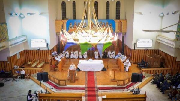 وأضاف رئيس الأساقفة أن الكنيسة تصلى من أجل رئيس جمهوريتنا السيد الرئيس عبد الفتاح السيسي وكل القائمين على اتخاذ القرار في قيادة البلاد، خاصة في هذه الأوقات الدقيقة التي تموج فيها المنطقة بالصراعات والتحديات.