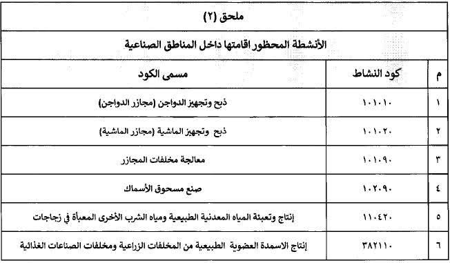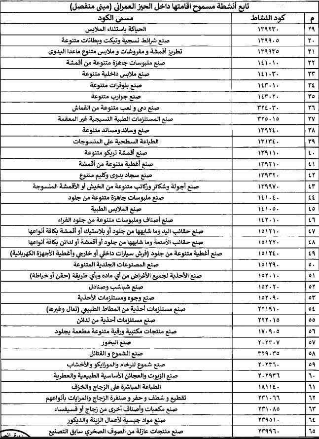 1. القرار يتيح إقامة 65 نشاطًا صناعيًا في مبنى منفصل داخل الأحوزة العمرانية والكتل السكنية