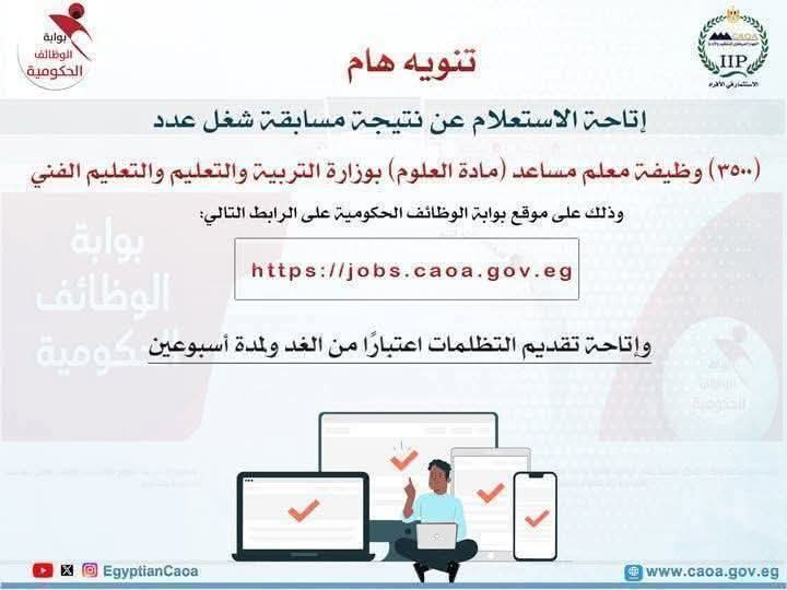يأتي ذلك عبر موقع بوابة الوظائف الحكومية: https://jobs.caoa.gov.eg/Default_Jobs.aspx