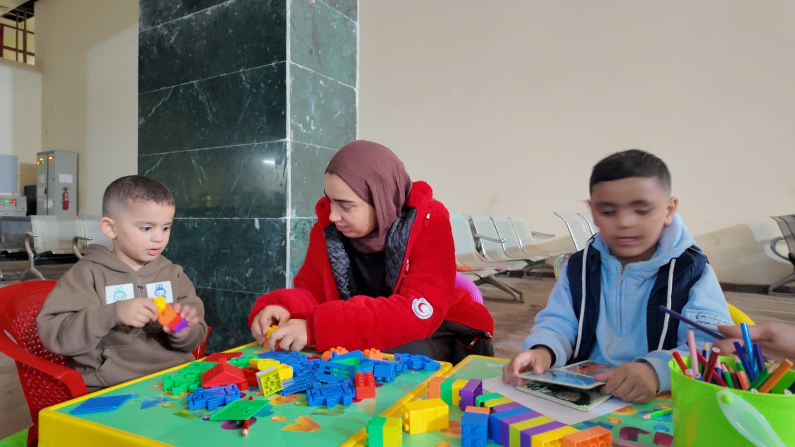 هذا إلى جانب، توزيع الوجبات الغذائية الساخنة، توفير الملابس الثقيلة ومستلزمات العناية الشخصية، وتوزيع «حقيبة العودة» على العائدين إلى القطاع.