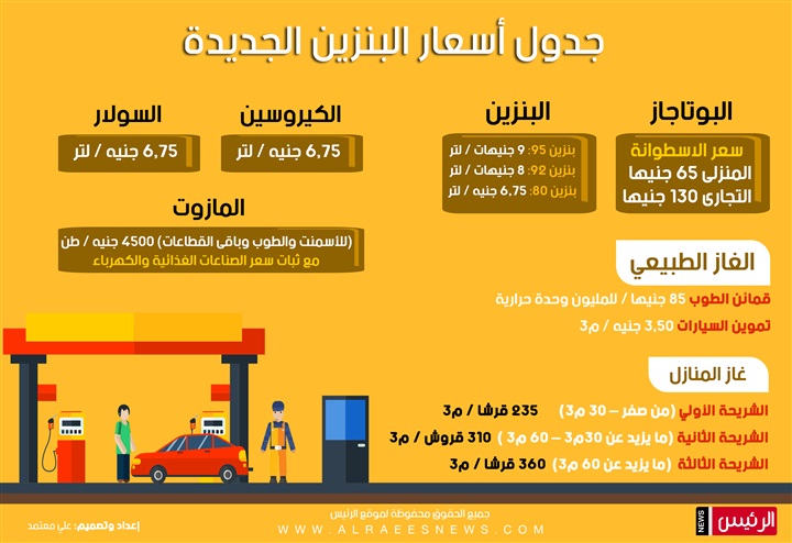 مالتى ميديا إنفوجراف| جدول أسعار البنزين الجديدة الجمعة 05/يوليو/2019 - 11:31 ص 7/5/2019 11:31:00 AM طباعة facebook twitter whats شارك