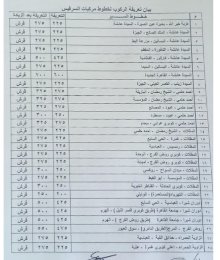 وكان اللواء خالد عبدالعال، محافظ القاهرة، اعتمد أجرة المواصلات الجديدة من القاهرة لجميع المحافظات بعد تحريك أسعار الوقود طبقاً لبيان وزارة البترول والثروة المعدنية وقرار مجلس الوزراء بالتحريك، وبلغت الزيادة حوالي 15% للأجرة.