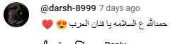 ولم تخل التعليقات من رسائل الترحيب بعودة الفنان، حيث كتب أحدهم: "حمد لله على السلامة يا فنان العرب"، في إشارة إلى اشتياق الجمهور لعودة الجرينى بعد فترة غياب.