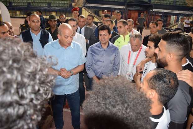 بالصور.. وزيرا الدفاع والرياضة يتابعان مران الفراعنة بالكلية الحربية