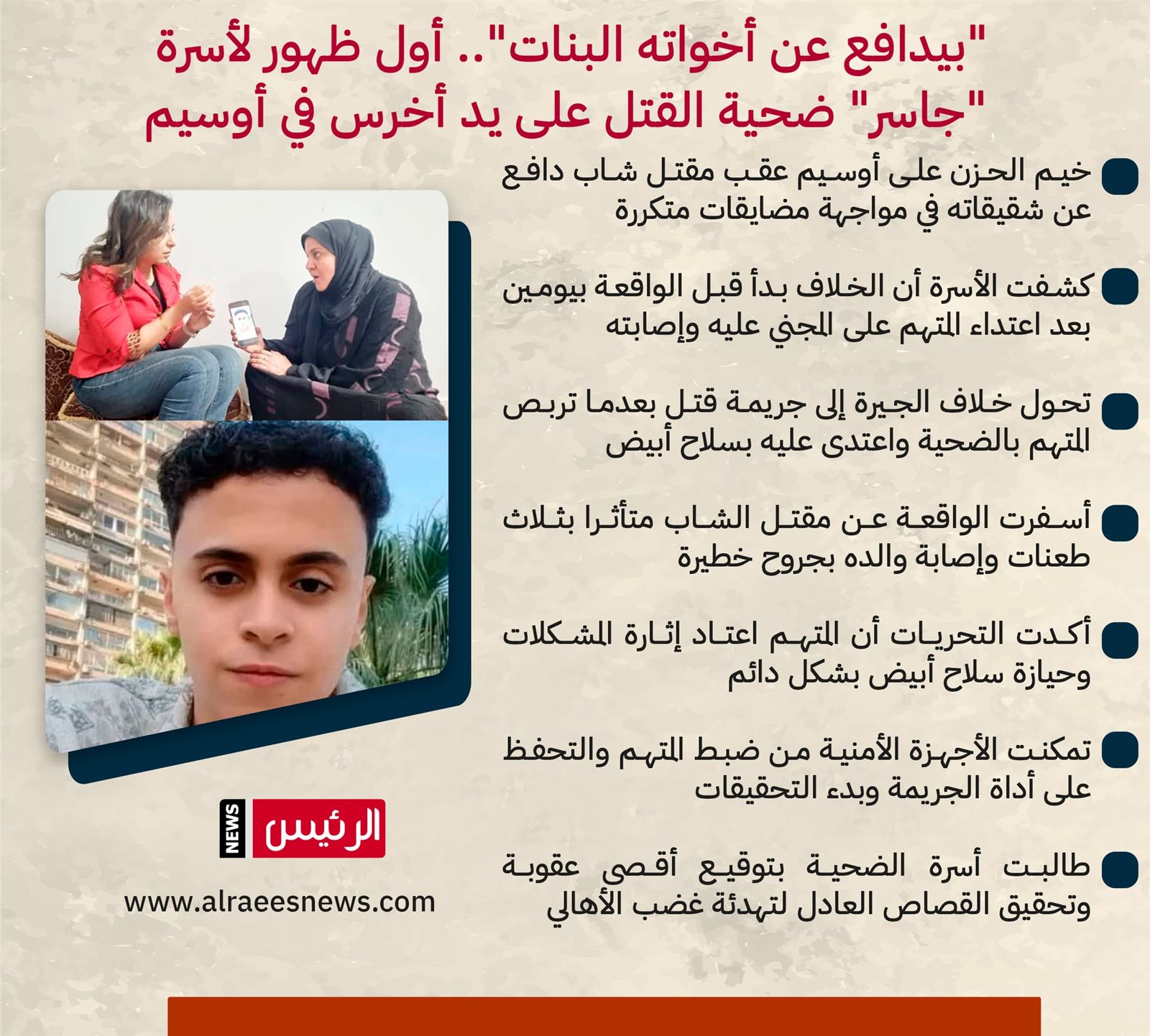 أسرة "جاسر" ضحية القتل على يد أخرس في أوسيم: "كان بيدافع عن أخواته البنات"| إنفوجراف