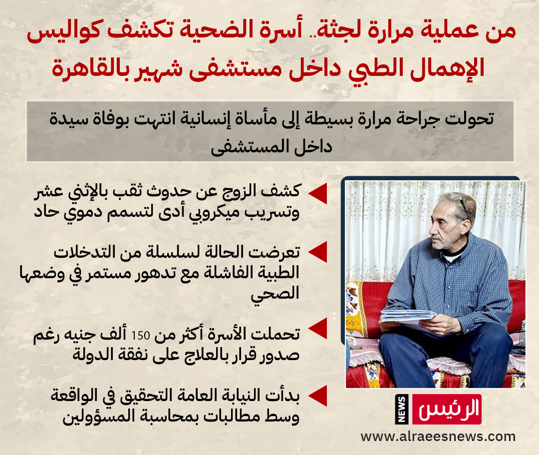 من عملية مرارة لجثة.. أسرة الضحية تكشف كواليس الإهمال الطبي داخل مستشفى شهير بالقاهرة| إنفوجراف
