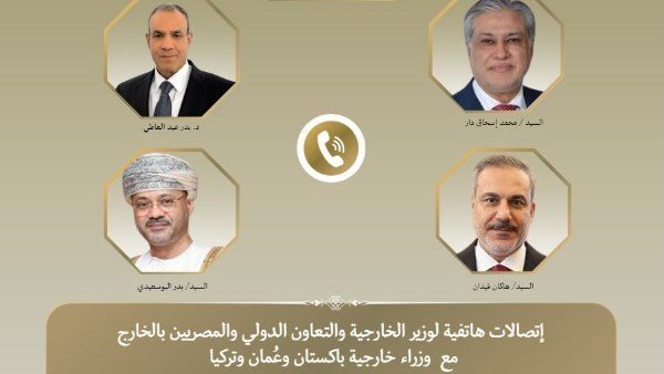 بحث الدكتور بدر عبد العاطي وزير الخارجية والتعاون الدولي والمصريين بالخارج، مستجدات الأوضاع الإقليمية، والمساعي المبذولة لاحتواء التوتر بالمنطقة، خلال اتصالات هاتفية، اليوم الاثنين، بينه وبين كل من: وزير خارجية سلطنة عمان الشقيقة بدر بن حمد البوسعيدي، ونائب رئيس الوزراء وزير خارجية جمهورية باكستان الإسلامية محمد إسحاق دار، ووزير خارجية الجمهورية التركية هاكان فيدان.