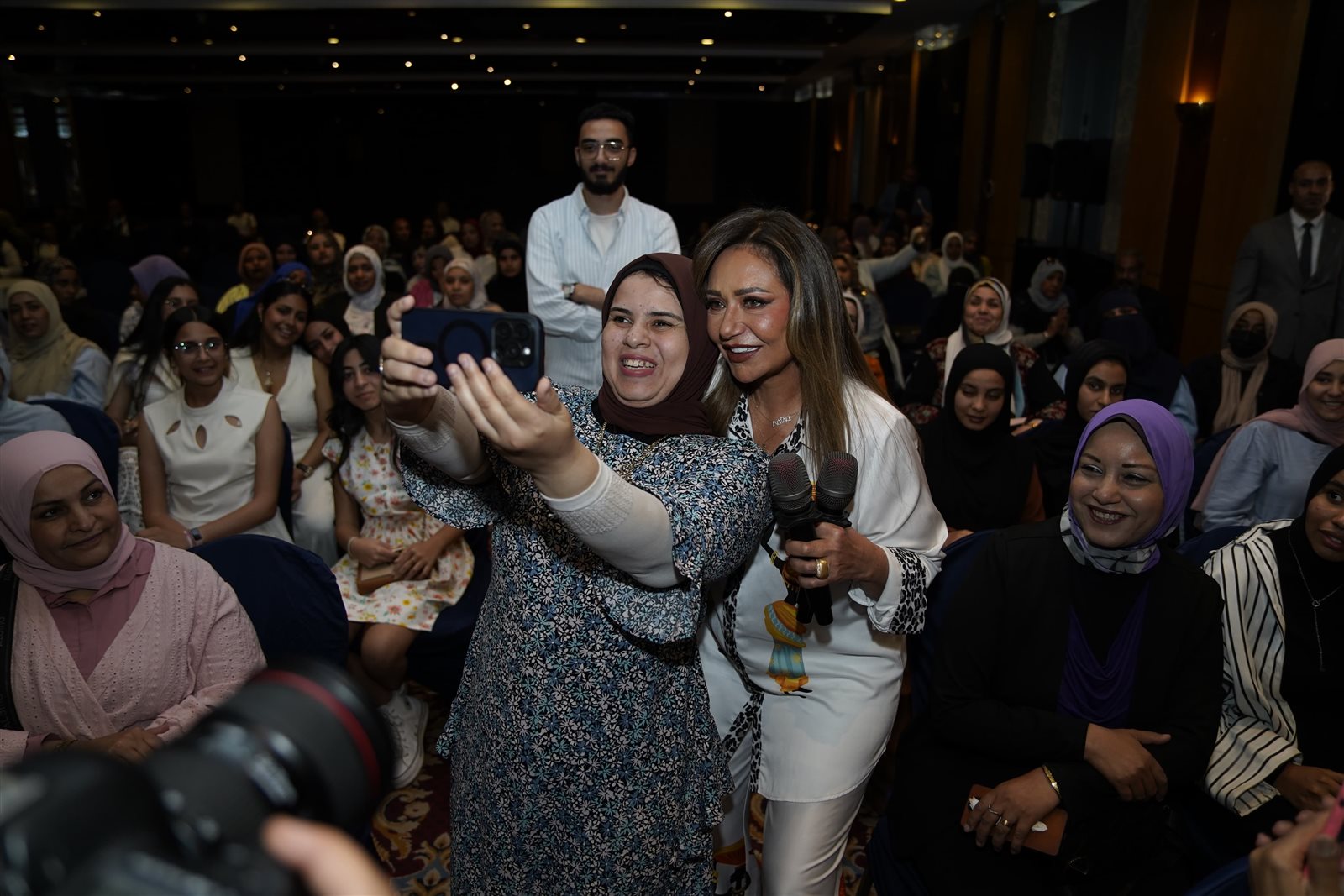 وعبرت إحدى الحاضرت من ذوي الهمم عن حبها الشديد وتأثرها الكبير بأدوار ليلى علوي من خلال صوتها، بل وما تقدمه من مبادرات اجتماعية، وتأثرت ليلى علوها بحديثها وعانقتها.