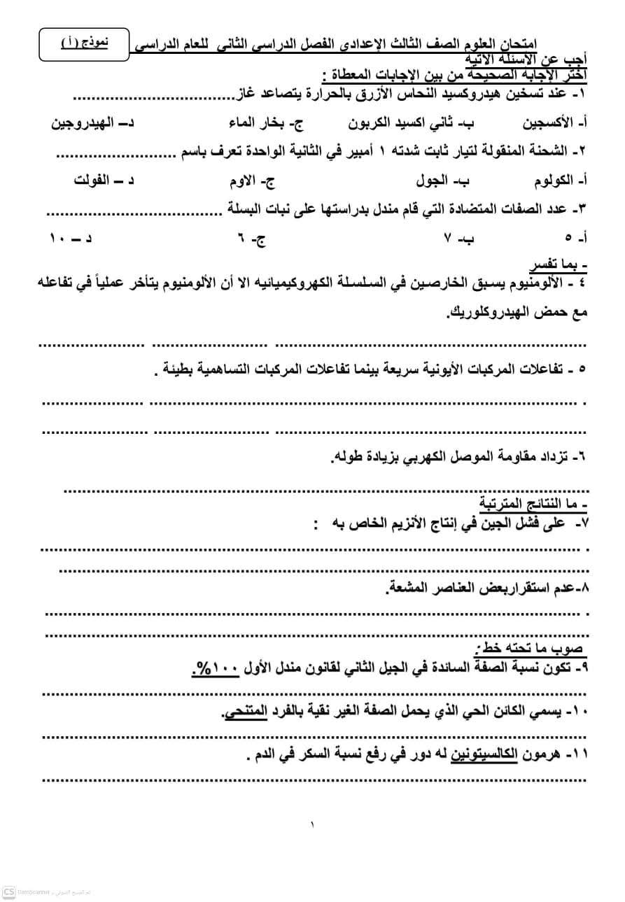 يُمكن الحصول على نماذج امتحانات مادة العلوم للشهادة الإعدادية ترم ثاني 2026 من خلال مطالعة الصور التالية: