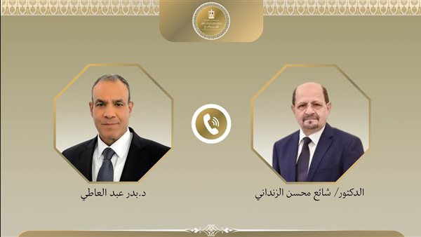 جرى اتصال هاتفي بين د. بدر عبد العاطي وزير الخارجية والتعاون الدولي والمصريين بالخارج، والدكتور شائع محسن الزنداني رئيس مجلس الوزراء ووزير الخارجية وشئون المغتربين بالجمهورية اليمنية الشقيقة، يوم الخميس ٢٣ أبريل، لبحث سبل تعزيز العلاقات الثنائية ومستجدات الأوضاع في اليمن الشقيق.