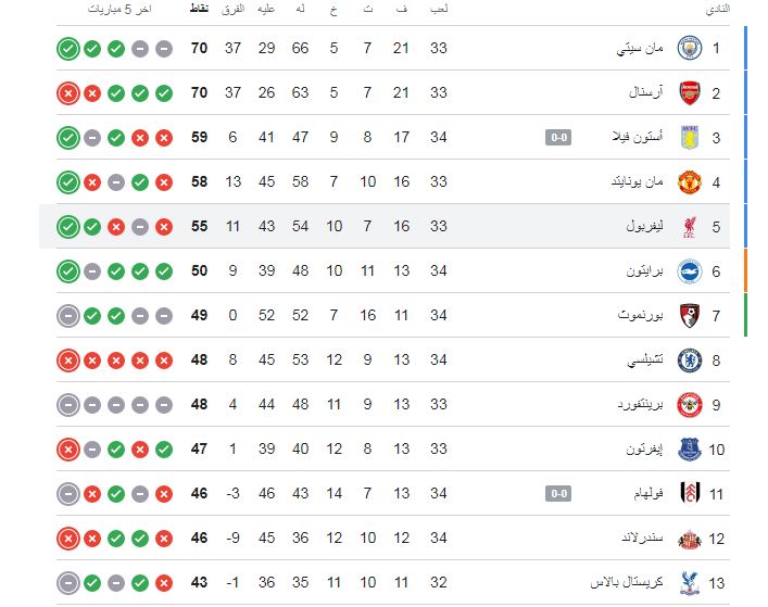 ليفربول في المركز الخامس بـ55 نقطة بقيادة المدرب الهولندي آرني سلوت، وقد فاز على إيفرتون بهدفين مقابل هدف في "ديربي الميرسيسايد"، في الجولة الماضية من الدوري الإنجليزي الممتاز.