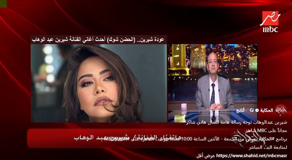 قالت شيرين عبدالوهاب، خلال مداخلة هاتفية مع برنامج «الحكاية» المذاع عبر قناة MBC مصر، إنها تتمنى الشفاء العاجل لهاني شاكر، مؤكدة مكانته الكبيرة في الوسط الفني، ودوره البارز في تاريخ الغناء العربي، قائلة: «يا حبيبي يا أستاذ هاني ألف سلامة عليك، يا رب ترجع لنا بخير بإذن الله، وترجع لجمهورك وبلدك»، معبرة عن دعمها الكامل له في هذه الفترة الصعبة.