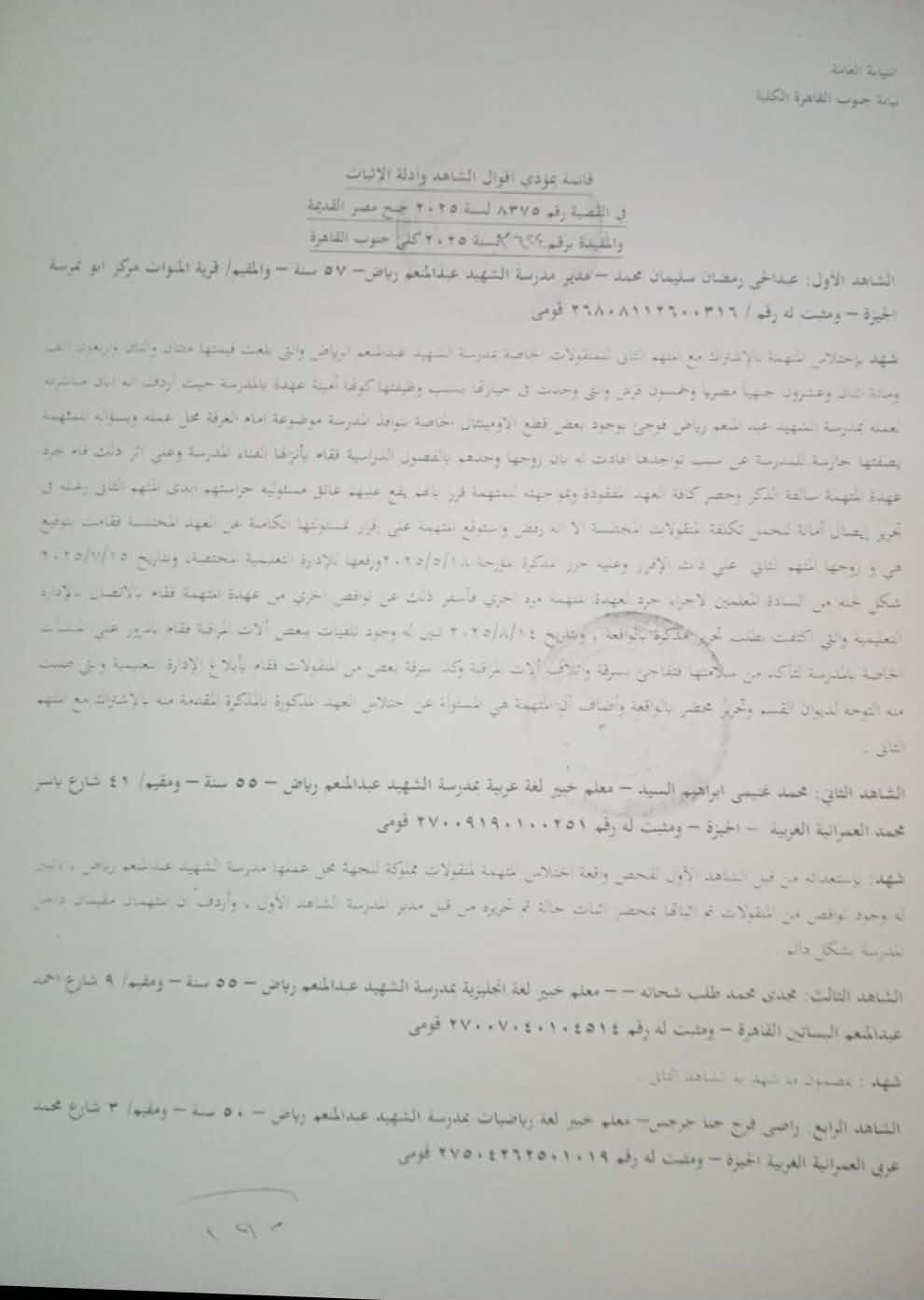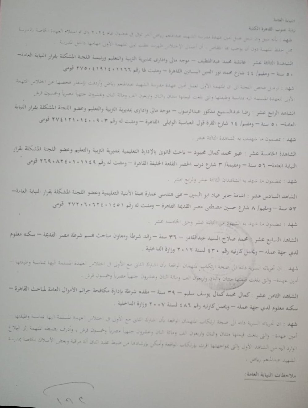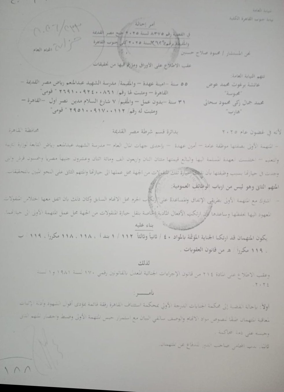 كما أشارت التحريات إلى وجود سيدة تدعى "ولاء" تولت إدارة التشكيل فعليًا، دون التوصل إلى كامل بياناتها.