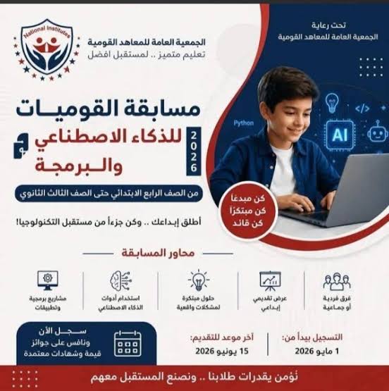 أعلنت الجمعية العامة للمعاهد القومية انطلاق «مسابقة القوميات للبرمجة والذكاء الاصطناعي»، في خطوة جديدة تستهدف دعم الابتكار وتنمية مهارات الطلاب في مجالات التكنولوجيا الحديثة.