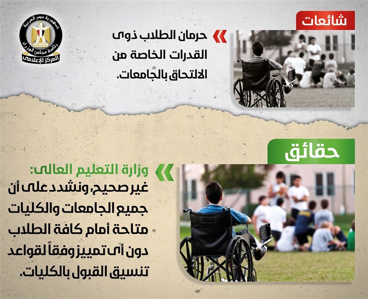 وحرمان الطلاب ذوى القدرات الخاصة من الالتحاق بالجامعات، وتعليمات من وزارة