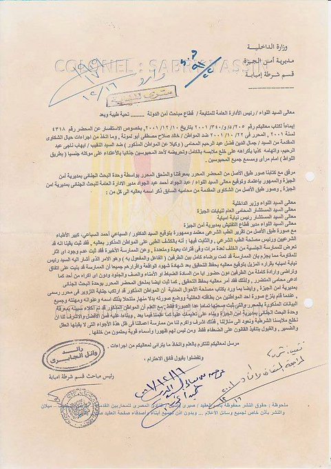 وتداولت صفحات منسوبة إلى الجماعة الإرهابية على مواقع التواصل الاجتماعي، وثيقة قالوا إنها محضر رسمي، يحمل إساءة إلى رئيس تحرير اليوم السابع، كما تناولت قنوات الإخوان التي يبث أغلبها من تركيا، المحضر المزعوم.