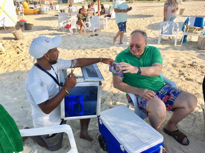 تداول رواد مواقع التواصل الاجتماعي صورا لفؤاد الثاني في إجازته السنوية مع عائلته على شاطئ البحر في إحدى قرى الساحل الشمالي.