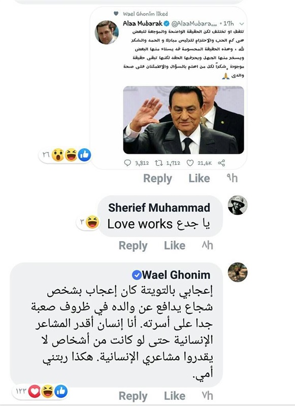 وائل غنيم يكشف سبب "إعجابه" بتغريدة علاء مبارك