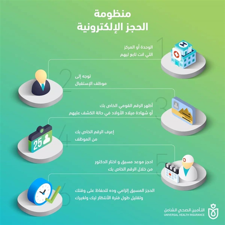 الصحى الشامل، إلى أن منظومة الحجز الإلكترونى تشمل عدداً من الخطوات، وهي: