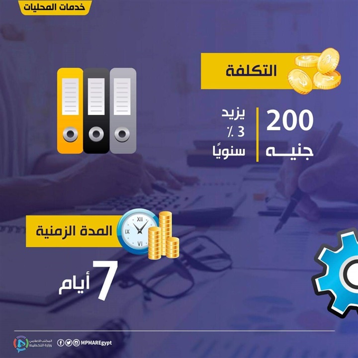 وتتمثل المستندات المطلوبة لأداء تلك الخدمة فى توفير صورة عقد الملكية، صورة بطاقة الرقم القومى، رسم كروكى يبين الموقع والطرق المؤدية إليه يوقع عليه من مهندس نقابى مع تقديم الايصال الدال على سداد الرسوم المستحقة، ويحصل طالب تلك الخدمة عليها فى مدة زمنية تقدر بـ 7 أيام.