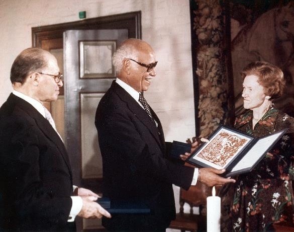 بالصور.. السادات يتسلم جائزة «نوبل للسلام».. ويداعب مساعده: «اوعى تكون أخدت الشيك!»