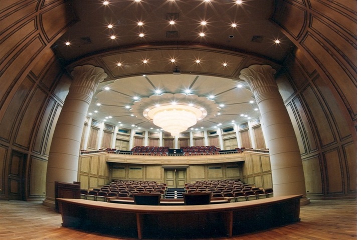 يوضح الموقع: "أقيم مبنى المحكمة الدستورية العليا على طراز معبد الأقصر على 14 مسلة فرعونية بالدور الأرضي و14 مسلة من الطابق الأول حتى الطابق الرابع".