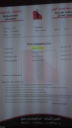 ابنته أصيبت بمرض التيفويد، برجاء سرعة اتخاذ اللازم نحو هذا الأمر" .