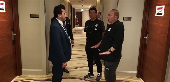 أشرف صبحى التقى باللاعبين وحرص علي مصافحتهم ثم دار حوار مضمونه ردود افعال الشارع المصري المساندة للفريق في مباراتيه أمام مالي وغانا ليس بسبب النتيجة فقط بقدر التفاني داخل الملعب والروح التي ظهروا عليها .