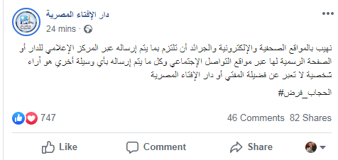 دار الإفتاء كل ما يشاع أن فضيلة المفتى قال بعدم فرضية الحجاب، مؤكدة أن ذلك أمر غير