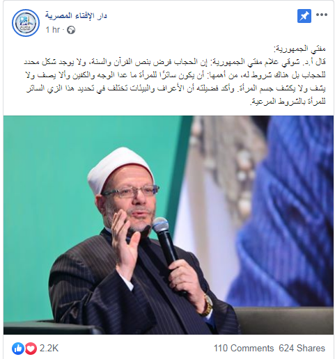 الإفتاء توضح حقيقة التصريح المتداول للمفتي عن الحجاب