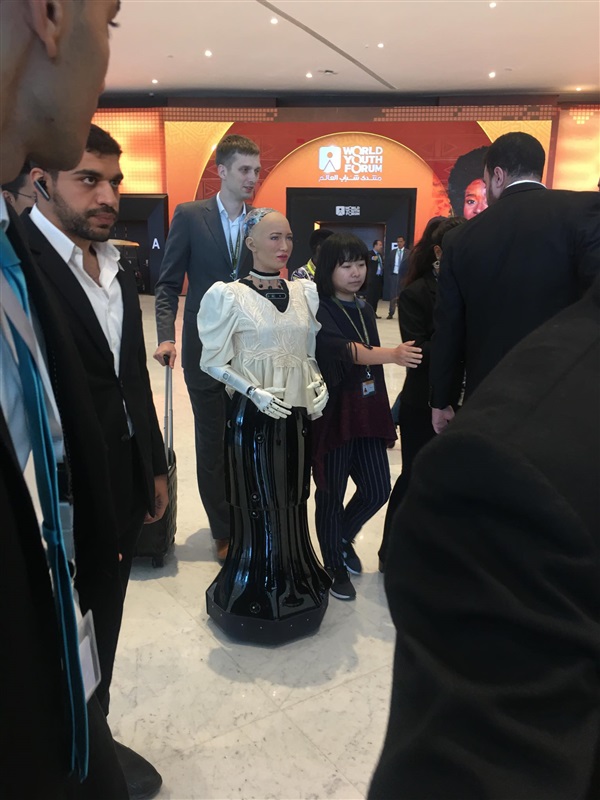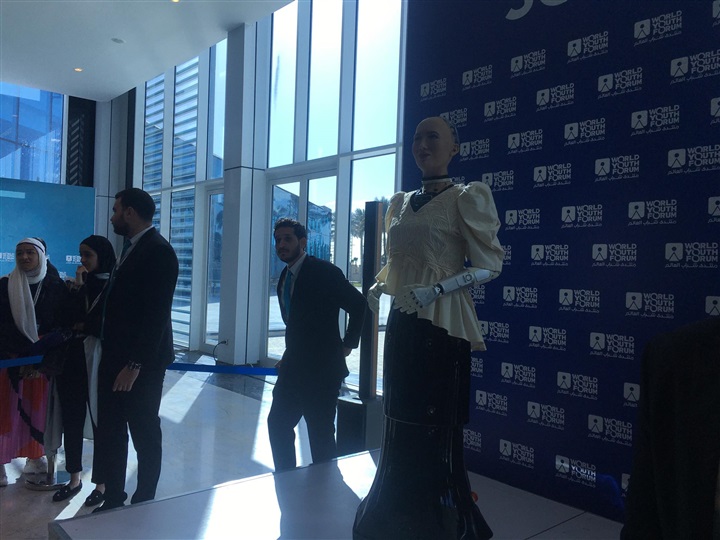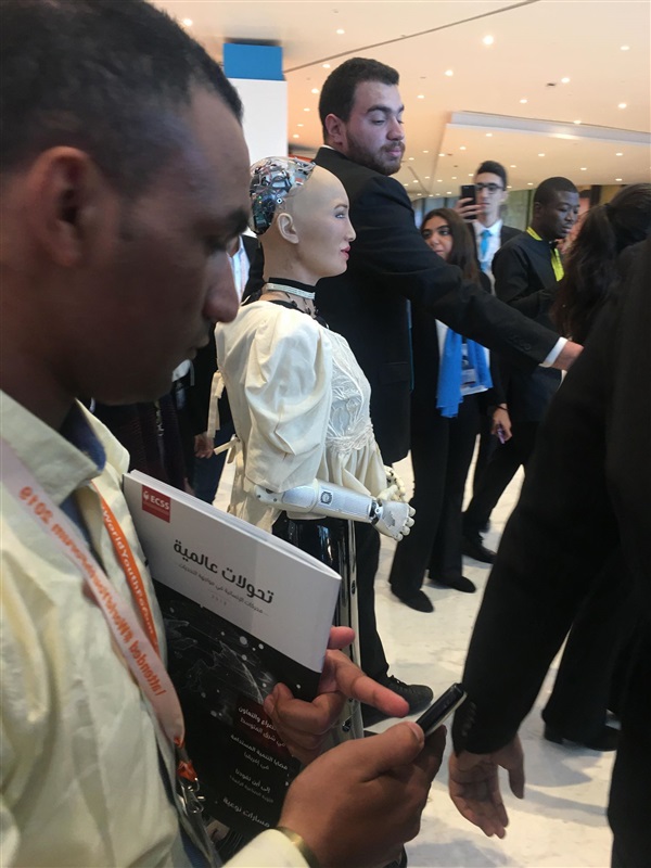 الثالثة في شرم الشيخ صورا مع "الروبوت صوفيا"، عقب تحدثها في جلسة