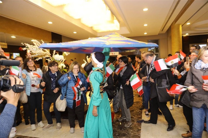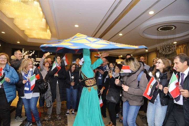 وأقيم مساء اليوم إحتفالا خاصا في فندق إقامة الوفد الإيطالي فور إستقبالهم، وذلك بالطبل والمزمار الذي أبهر الحضور جميعا وتراقصوا على الموسيقى طوال الإستقبال، وقاموا برفع الأعلام المصرية والإيطالية.