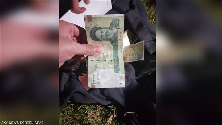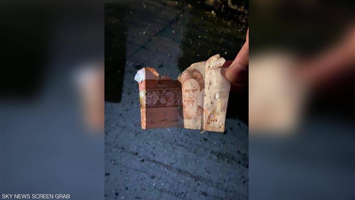 وتظهر هذه الصور أوراقا نقدية من العملتين الإيرانية والسورية وكتابا باللغة الفارسية، وفي صور أخرى تظهر أشلاء، وبنادق متفحمة من طراز "كلاشنيكوف".