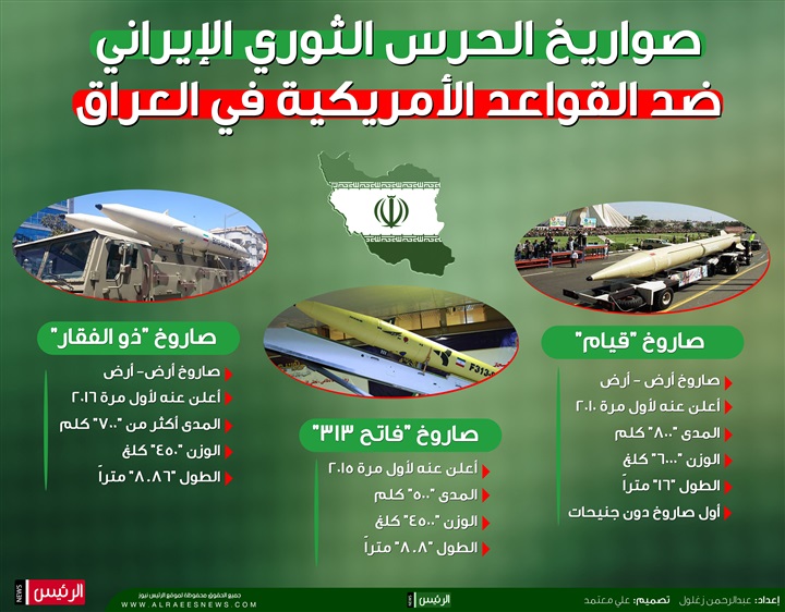 مالتى ميديا انفوجراف| صواريخ الحرس الثوري الإيراني ضد القواعد الأمريكية في العراق الأربعاء 08/يناير/2020 - 02:29 م 1/8/2020 2:29:00 PM طباعة facebook twitter whats شارك