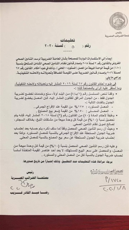 خاص| تعديل المعاملة الضريبية لرسم التأمين الصحي لشركات السجائر والمعسل (مستند)