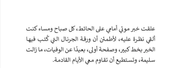 الحائط، كل صباح ومساء كنت ألقي نظرة عليه، لأطمئن أن ورقة الجرنال التي كُتب فيها