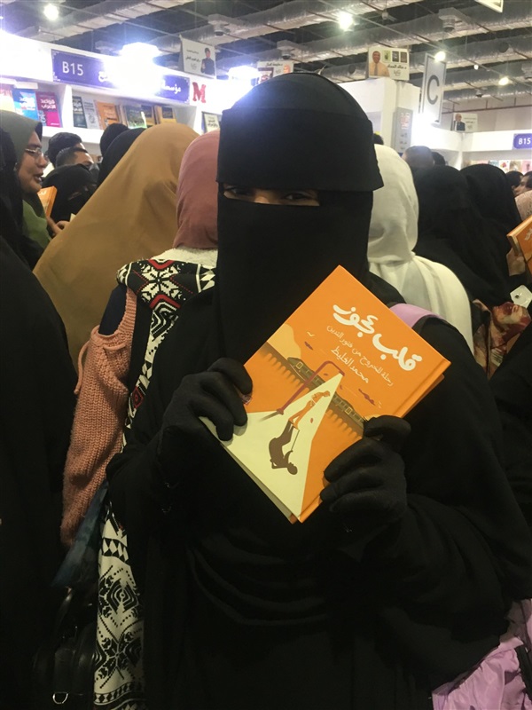 تقف المنتقبات في صفوف طويلة لشراء كتاب يحمل اسم الداعية الإسلامي محمد الغليظ، تحت عنوان "قلب عجوز رحلة للخروج من فتور التدين".
