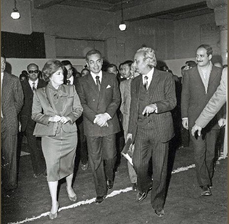 وفي هذه الصورة النادرة نشاهد السيدة جيهان السادات، زوجة الرئيس الراحل، في زيارة للمعرض يوم 29 يناير، ويظهر على يمينها وزير الثقافة والإعلام آنذاك منصور حسن، وعلى يسارها الشاعر صلاح عبد الصبور، الذي كان يتولى رئاسة هيئة الكتاب والمعرض.