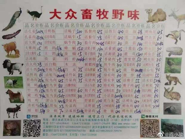 ويعتقد الخبراء، أن المرض قد يكون نشأ في الثعابين، والتي تُعرف بأنها حاملة لفيروسات كورونا، كان السوق نقطة ساخنة مع السكان المحليين، الذين يمكن أن يختاروا شراء لحمهم "الدافئ" أو الطازج مما يعني أنه قد تم ذبحه قبل لحظة.