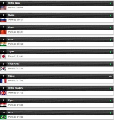 تقدمت مصر مركزين في التصنيف بعدما كانت في المركز الحادي عشر في العام الماضي، فيما جاءت الولايات المتحدة بالمركز الأول وتبعتها كل من روسيا والصين والهند واليابان، على الترتيب.