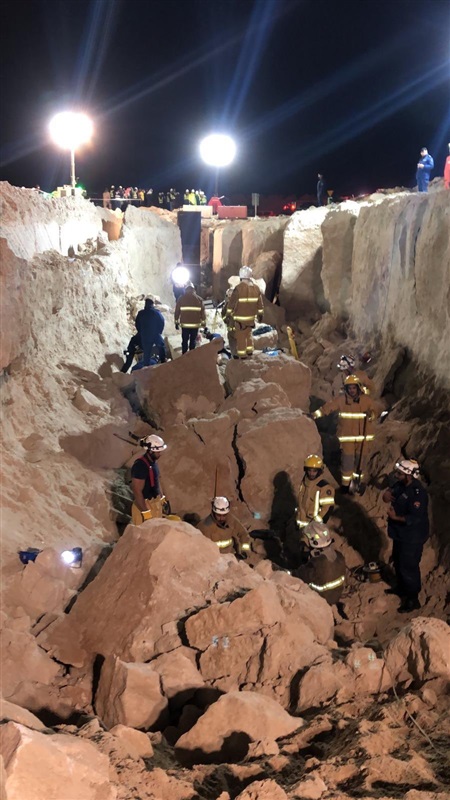 وكانت غرفة عمليات وزارة الداخلية الكويتية، قد تلقت بلاغا بوقوع انهيار أرضى بمشروع مدينة المطلاع السكنية، فتوجه على الفور رجال الاطفاء إلى موقع البلاغ، لمحاولة انقاذ العمال الذين هوت عليهم الرمال داخل الحفرة.