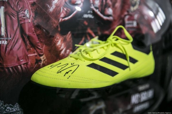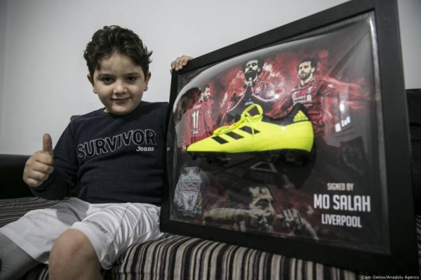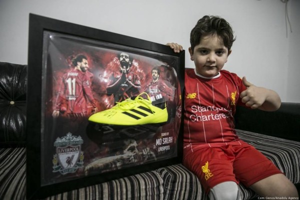 وأرسل صلاح حذاء رياضي موقع منه إلى الطفل السوري تعبيرا له عن دعمه ومساندته.