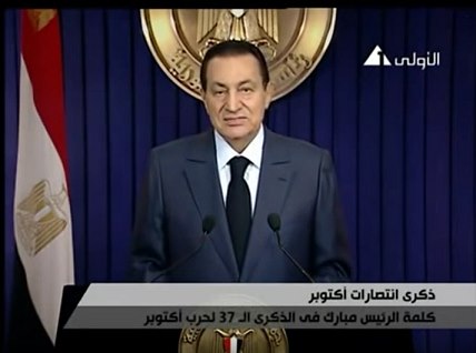ومحلياً، كان الخطاب الأخير للرئيس الراحل في أكاديمية الشرطة احتفالاً بعيدها وتحديداً في 24 يناير 2011، بعد نحو ثلاثة أشهر من مشاركته في انتصارات أكتوبر وإلقائه خطابًا متلفزًا في الذكرى الـ37.