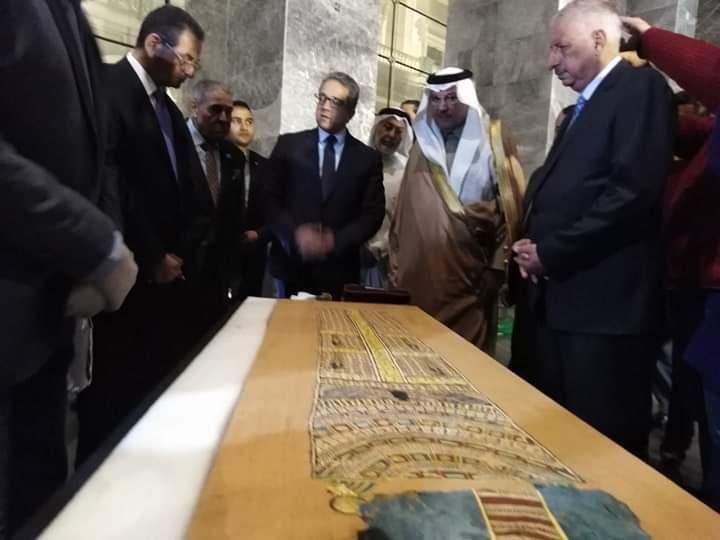 تسلم الدكتور خالد العناني، وزير السياحة والآثار، من السفير السعودي بالقاهرة أسامة النقلي، قطعة من كسوة الكعبة المشرفة للعام الماضي أهدتها المملكة العربية السعودية لمتحف الآثار بمدينة الثقافة والفنون بالعاصمة الإدارية الجديدة لتدخل ضمن سيناريو العرض المتحفي للمتحف.