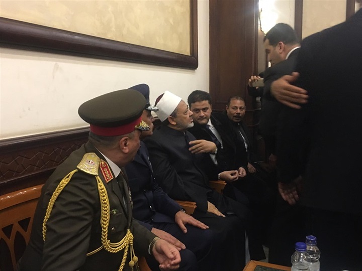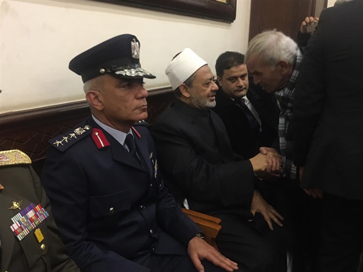 بالصور| شيخ الأزهر يقدم واجب العزاء في حسني مبارك