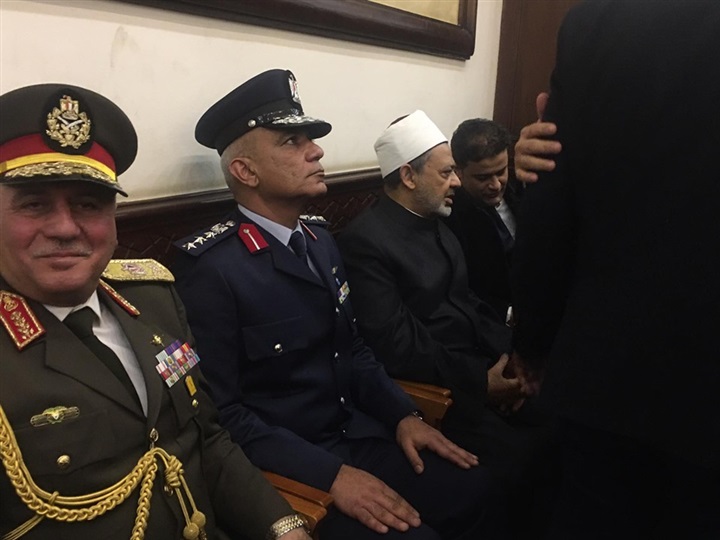 وأناب الرئيس عبدالفتاح السيسي، كبير الياوران اللواء أركان حرب صبري السيد يوسف، لأداء واجب العزاء، بينما كثّفت قوات الأمن من ورجال الجيش والشرطة والحرس الجمهوري من تواجدها، وانتشرت على طول الطرق المؤدية للمسجد.