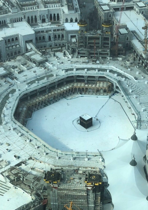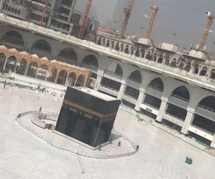 وتداول رواد مواقع التواصل الاجتماعي صور للحرم المكى وهو فارغ.