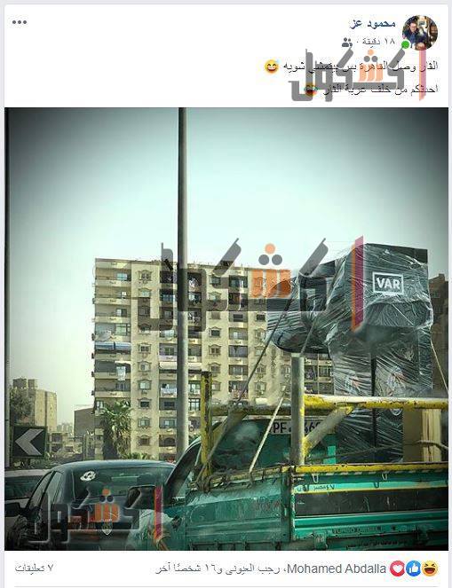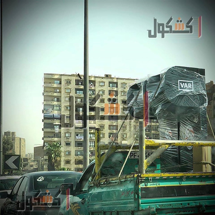 تداول رواد مواقع التواصل الاجتماعي صورا لأجهزت تقنية الحكم الفيديو «VAR»، محملة فوق سيارة نقل أعلى أحد كباري القاهرة.