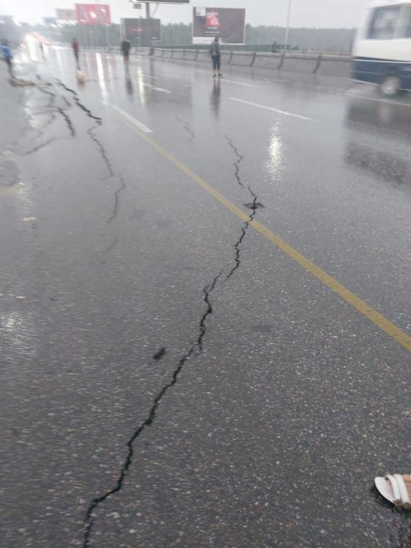 أعلنت الإدارة العامة للمرور عن حدوث هبوط أرضي بعمق ٢ متر في ١٠٠ متر على طريق المحور.