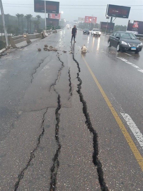 عمقه 2 متر.. هبوط أرضي على طريق المحور (صور)